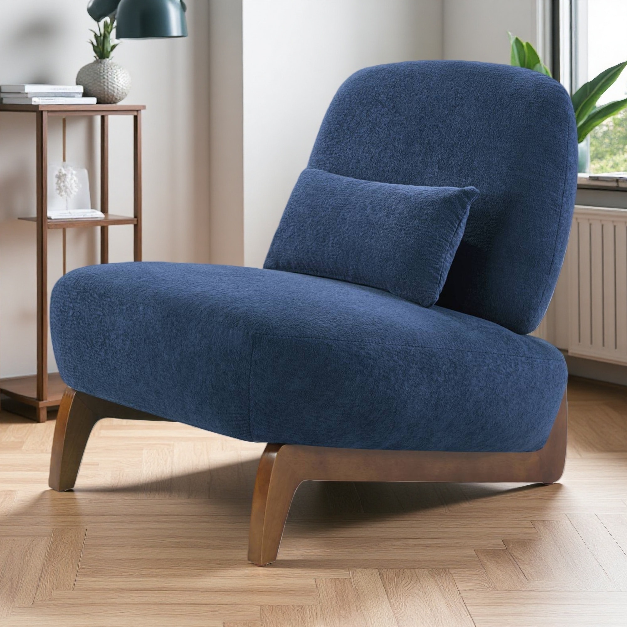 Linen and Wood Accent Chair with Armless in Ivory White