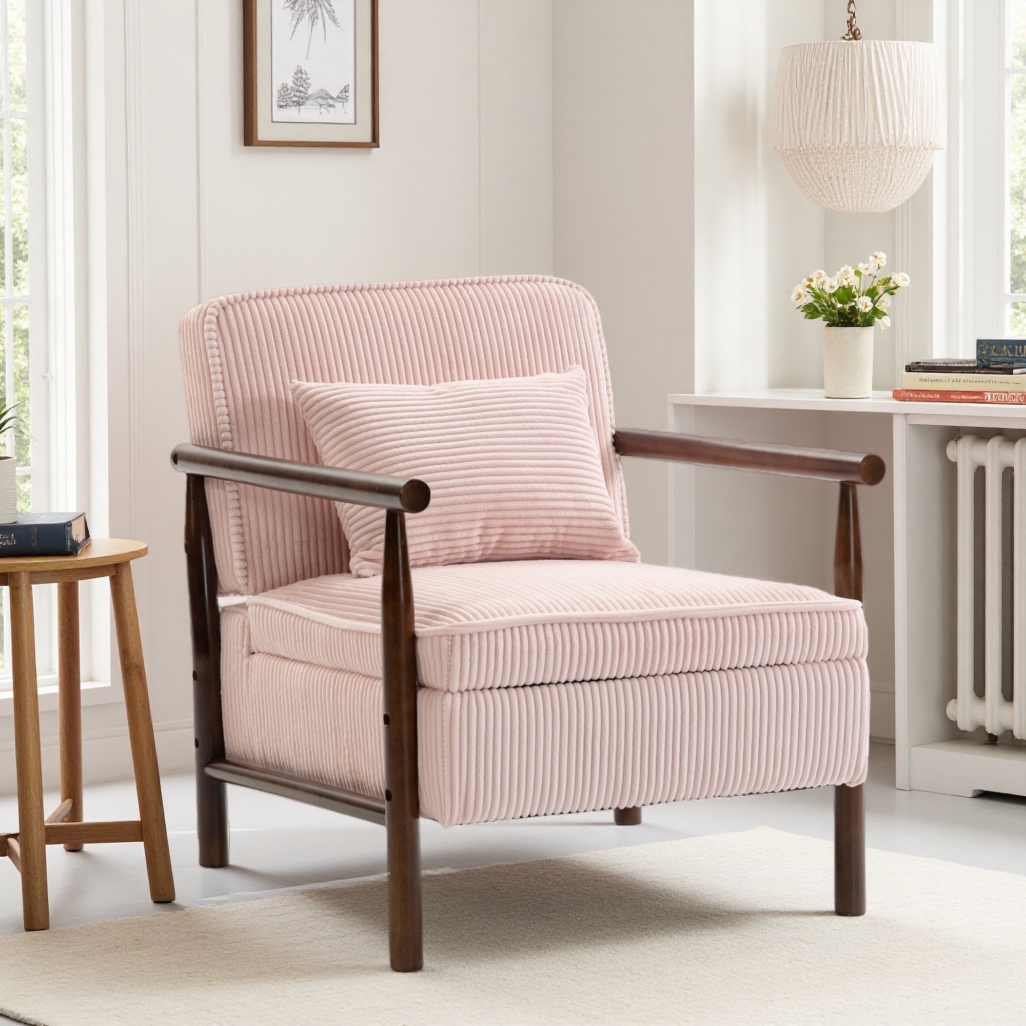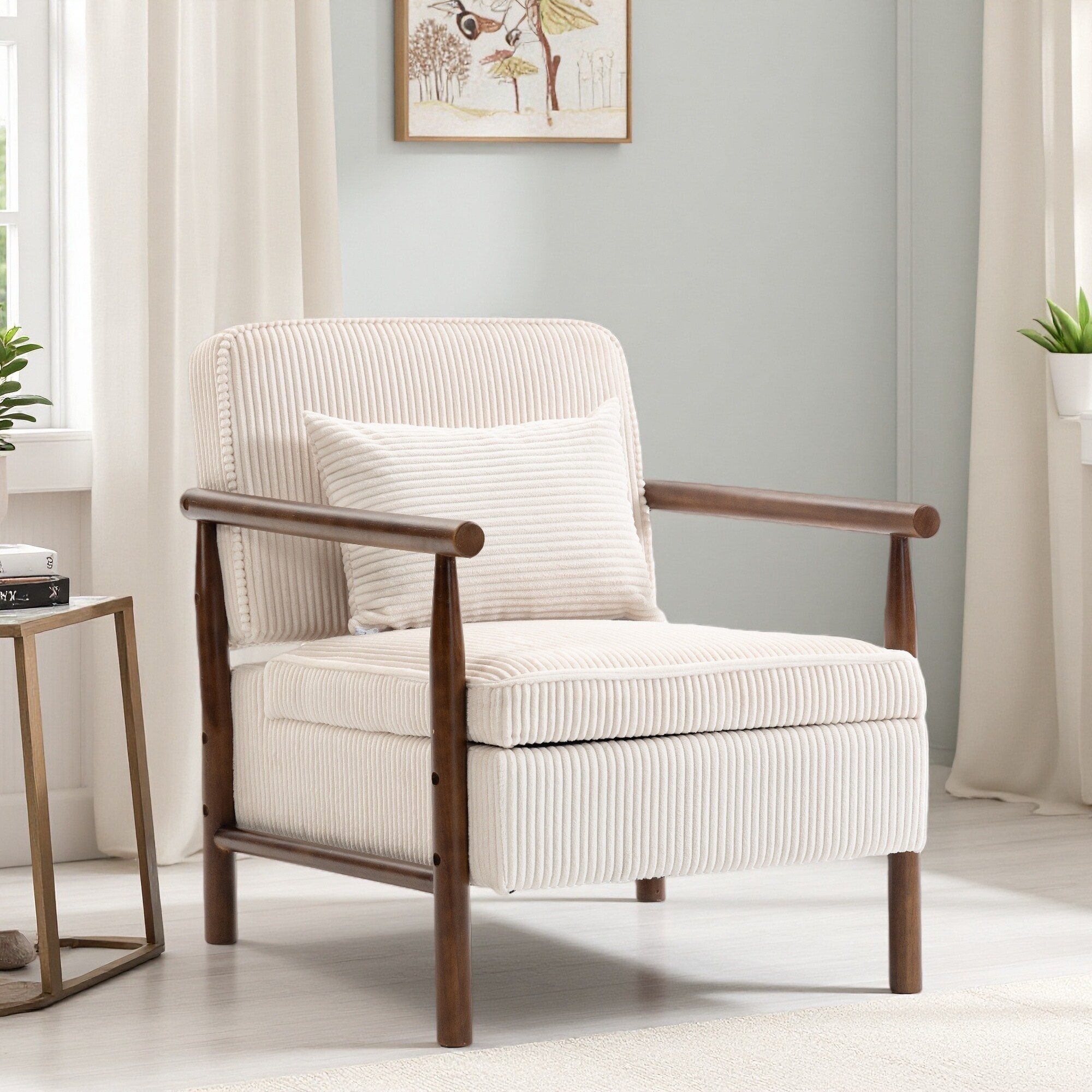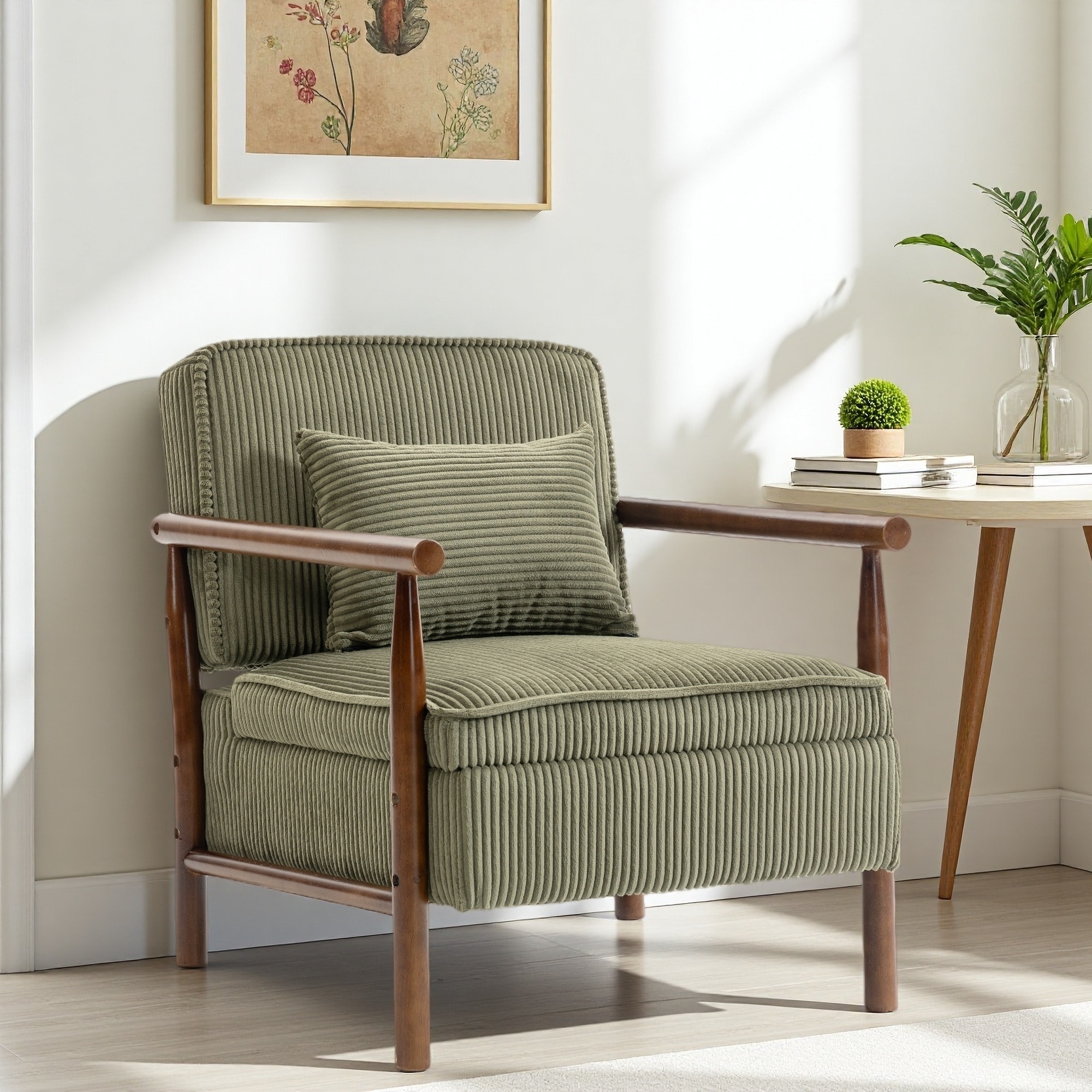 Corduroy Mid Century Modern Storage Armchair with Waist Cushion and Wood Frame