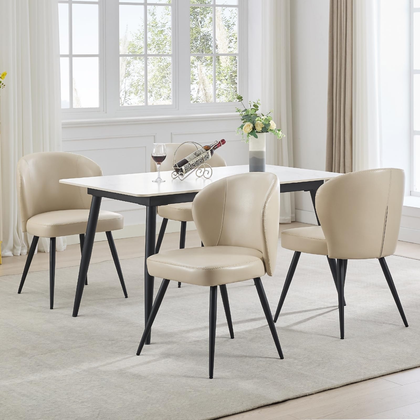 Set of 4 PU Leather Accent Chair,Curved Back Steel Legs