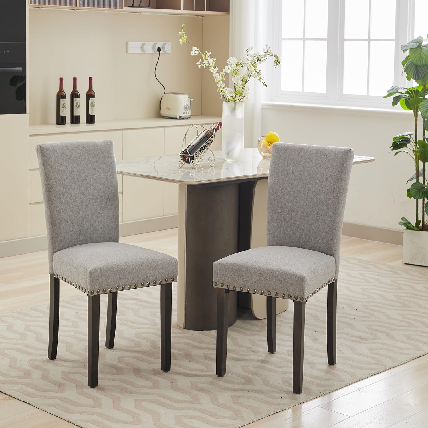 2pcs Linen Parsons Chair, Nailhead Trim