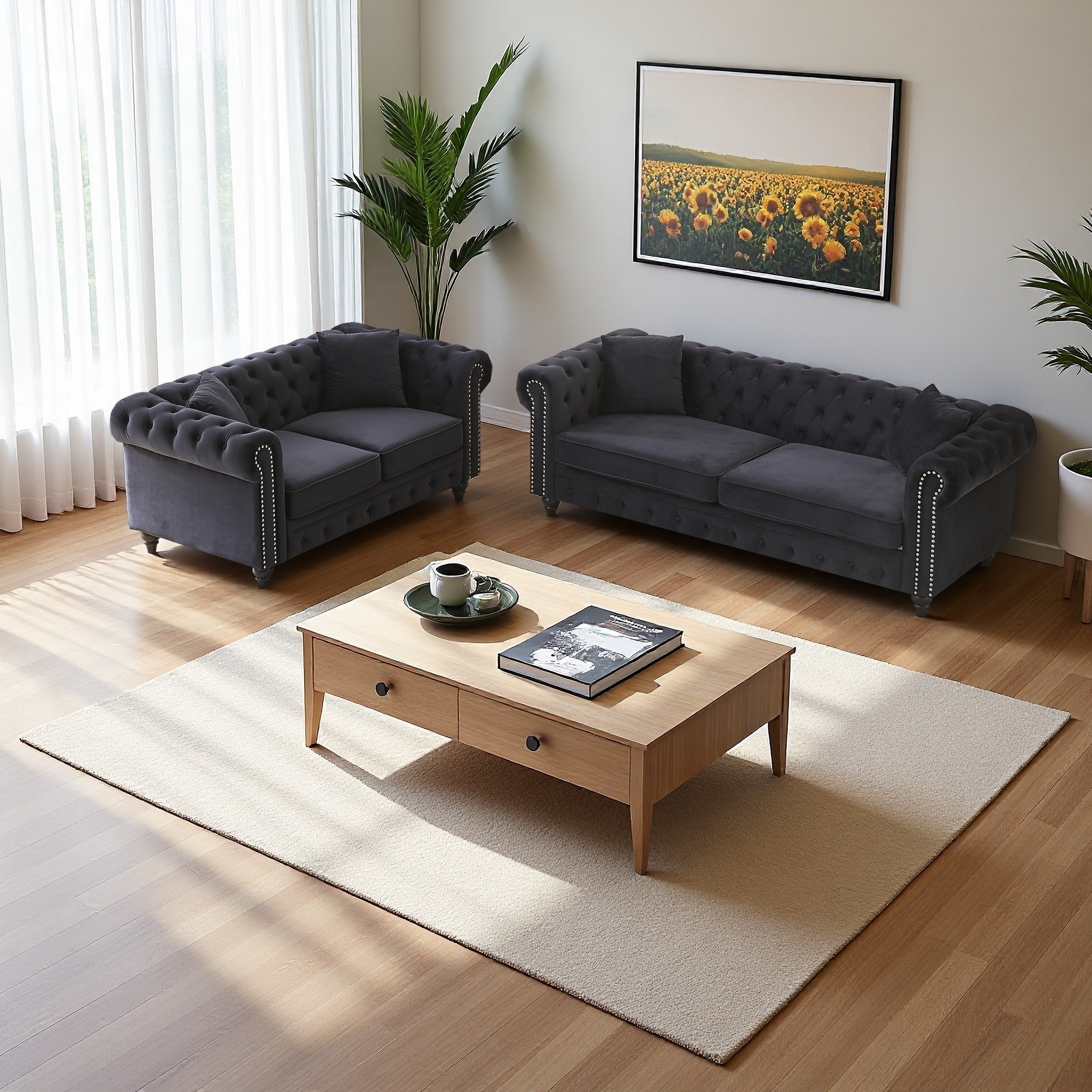Ekitike 3 Pieces Living Room Sets 2 Sofa 1 Chair