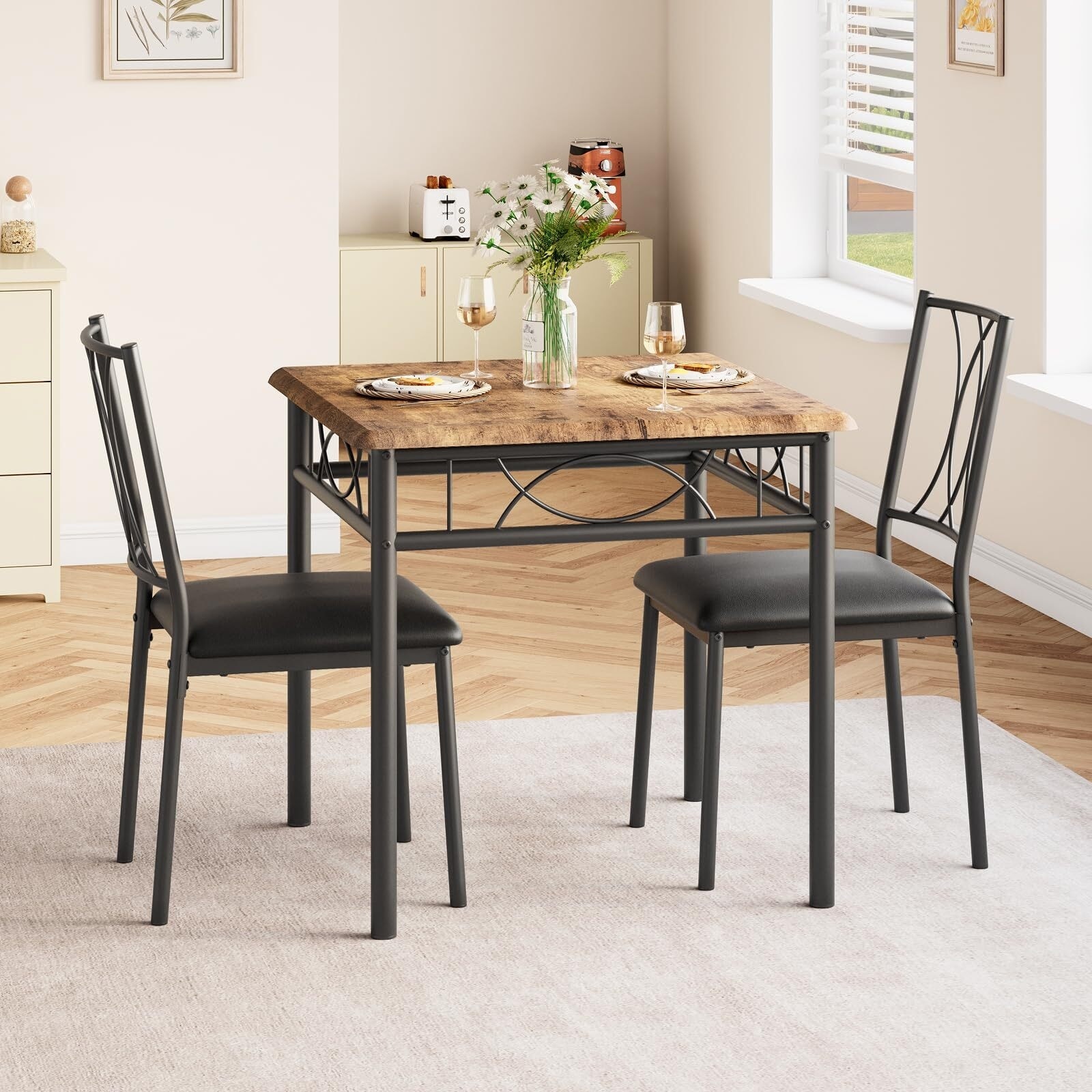 Square Space-Saving,3 Piece Kitchen Table with 2 Chairs