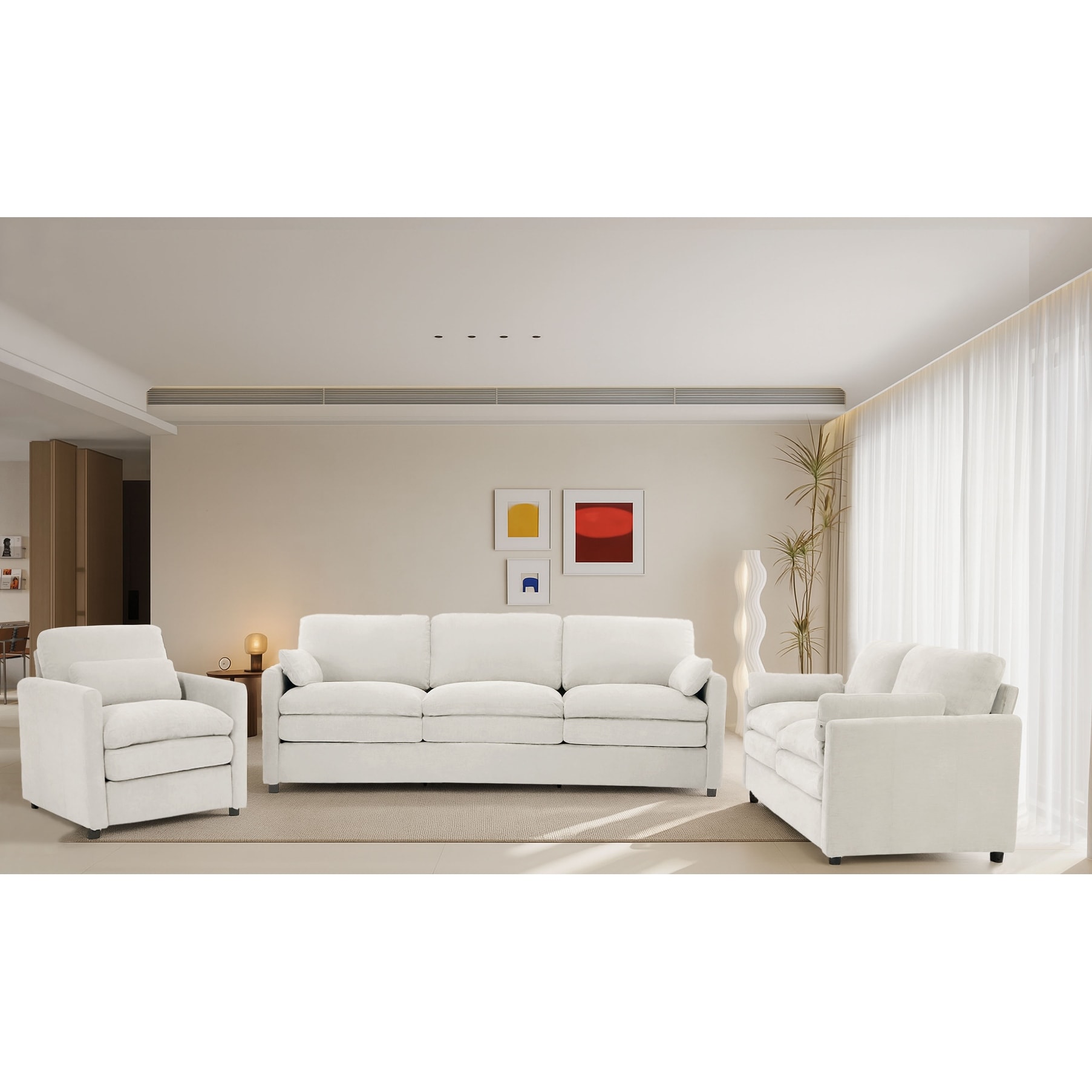 Modern Minimalist Chenille Fabric Upholstered 3-Pieces Living Room Set with a Chair, a 2-Seater Sofa and a 3-Seater Sofa