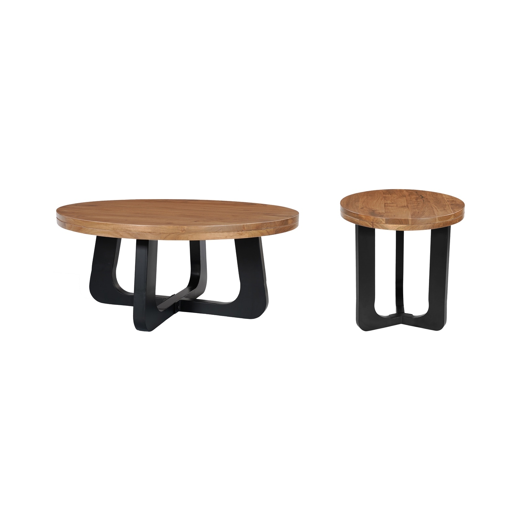 Ava Modern 2-Piece Round Solid Wood Living Room Table Set