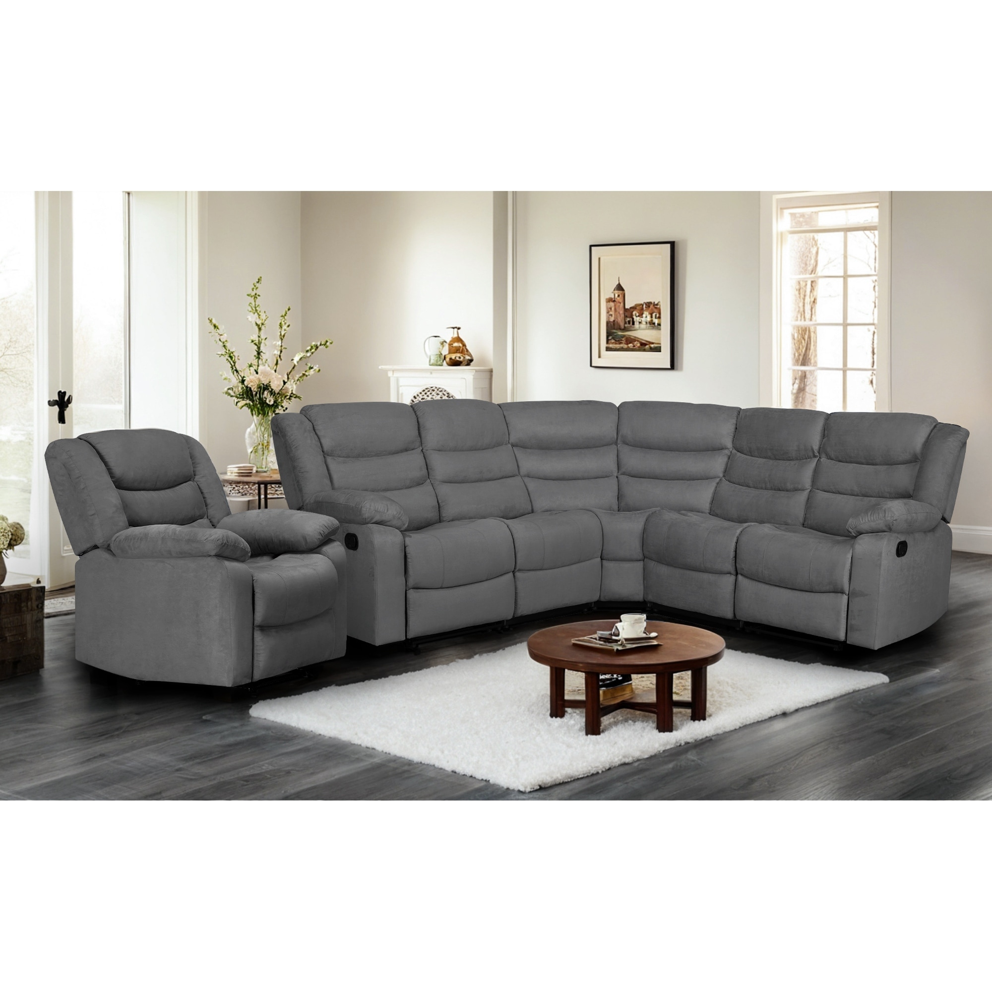 Recliner and Sectional Sofa Set, Suede 6-Piece Manual Reclining Sectional Sofa Set with Dropdown Table