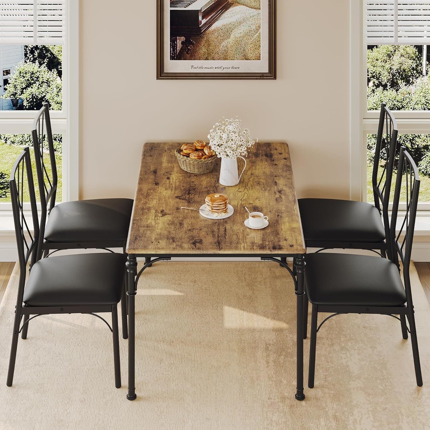 Dining Table Set for 5, Kitchen Table and Chairs for 4 with Upholstered Chairs