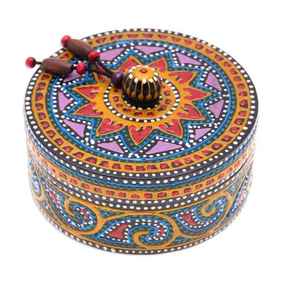Kashmir Radiance,'Elegant Papier Mache and Wood Trinket Box'