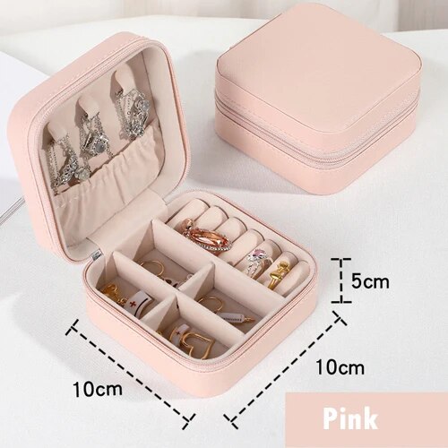 Portable Jewelry Organization: Travel Zipper Storage Box For Earrings, Necklaces, Rings Mini Jewelry Box Pink