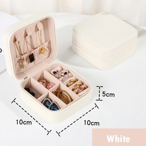 Portable Jewelry Organization: Travel Zipper Storage Box For Earrings, Necklaces, Rings Mini Jewelry Box White