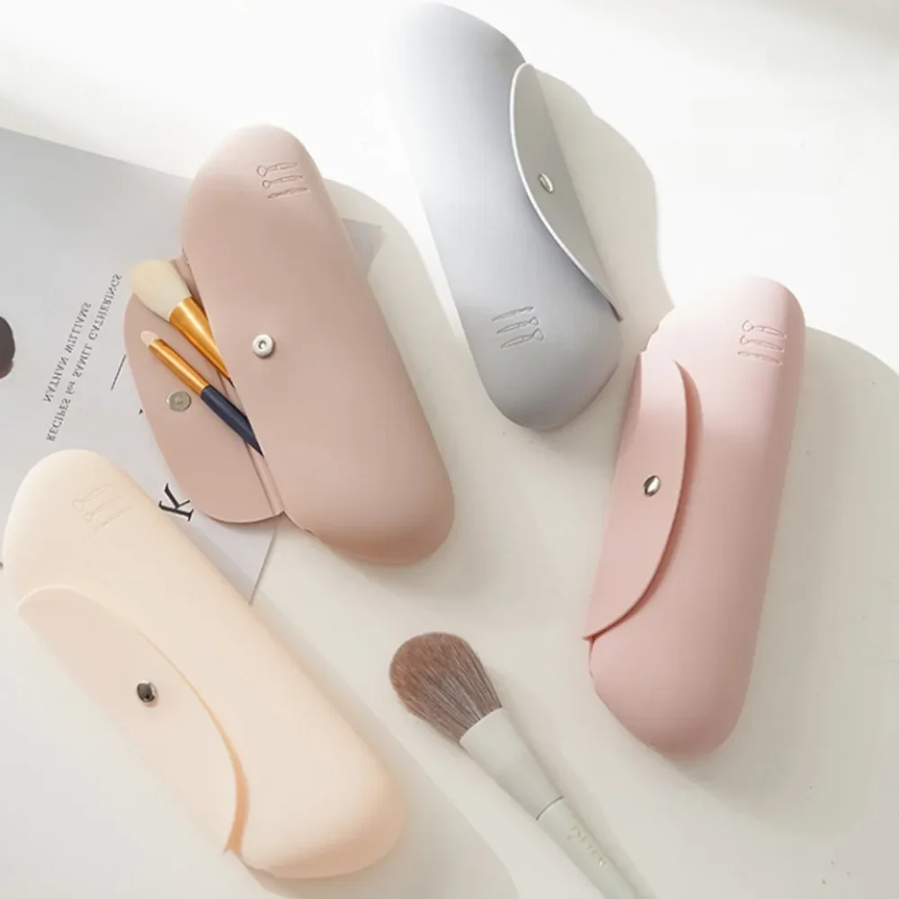 Portable Waterproof Travel Makeup Brush Holder Silicone Cosmetic Brushes Bag & Makeup Sponge Case, Durable Cosmetic Tool pink