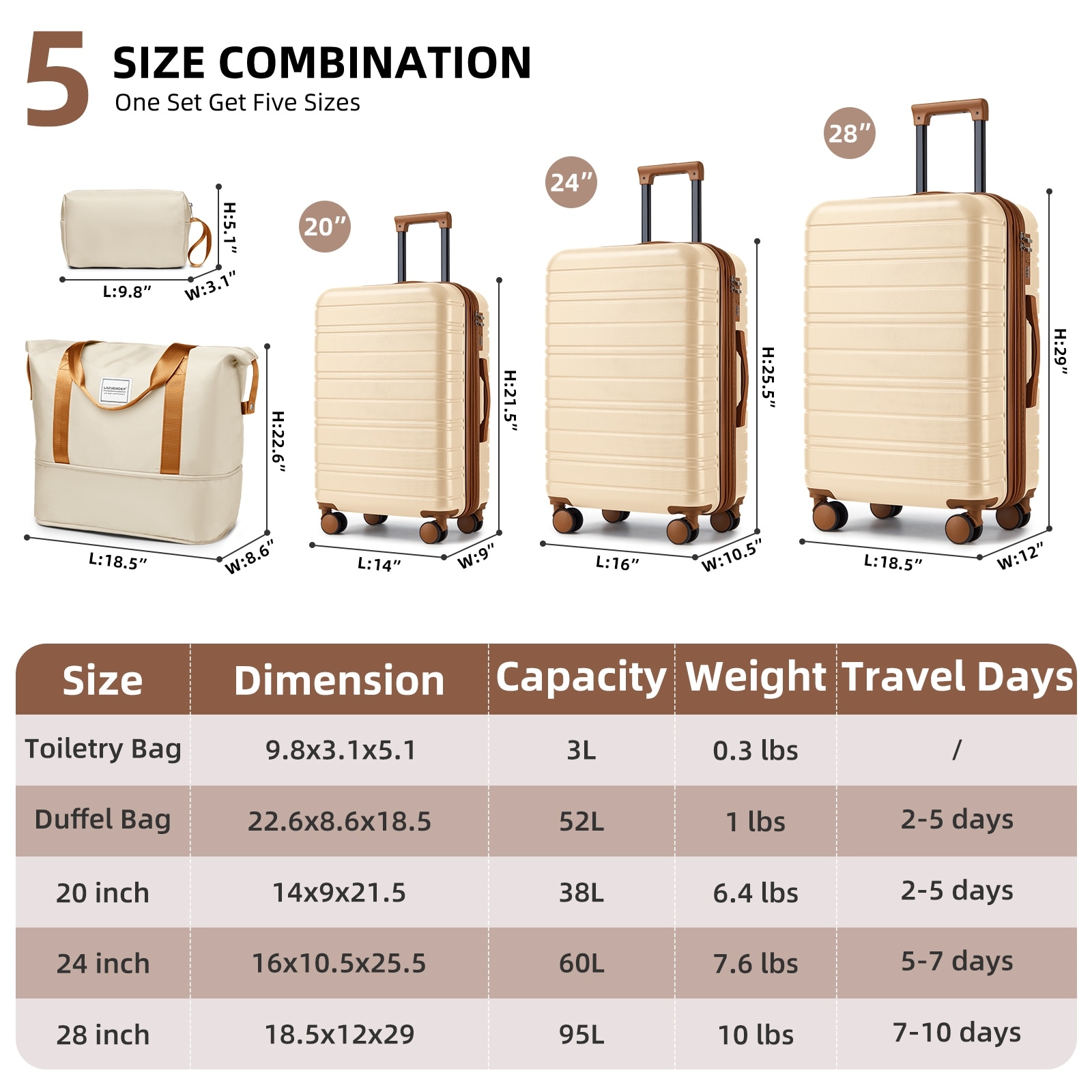 Luggage Sets 5 Piece with Duffel Bags, Hardside Expandable Suitcases with Spinner Wheels, Black