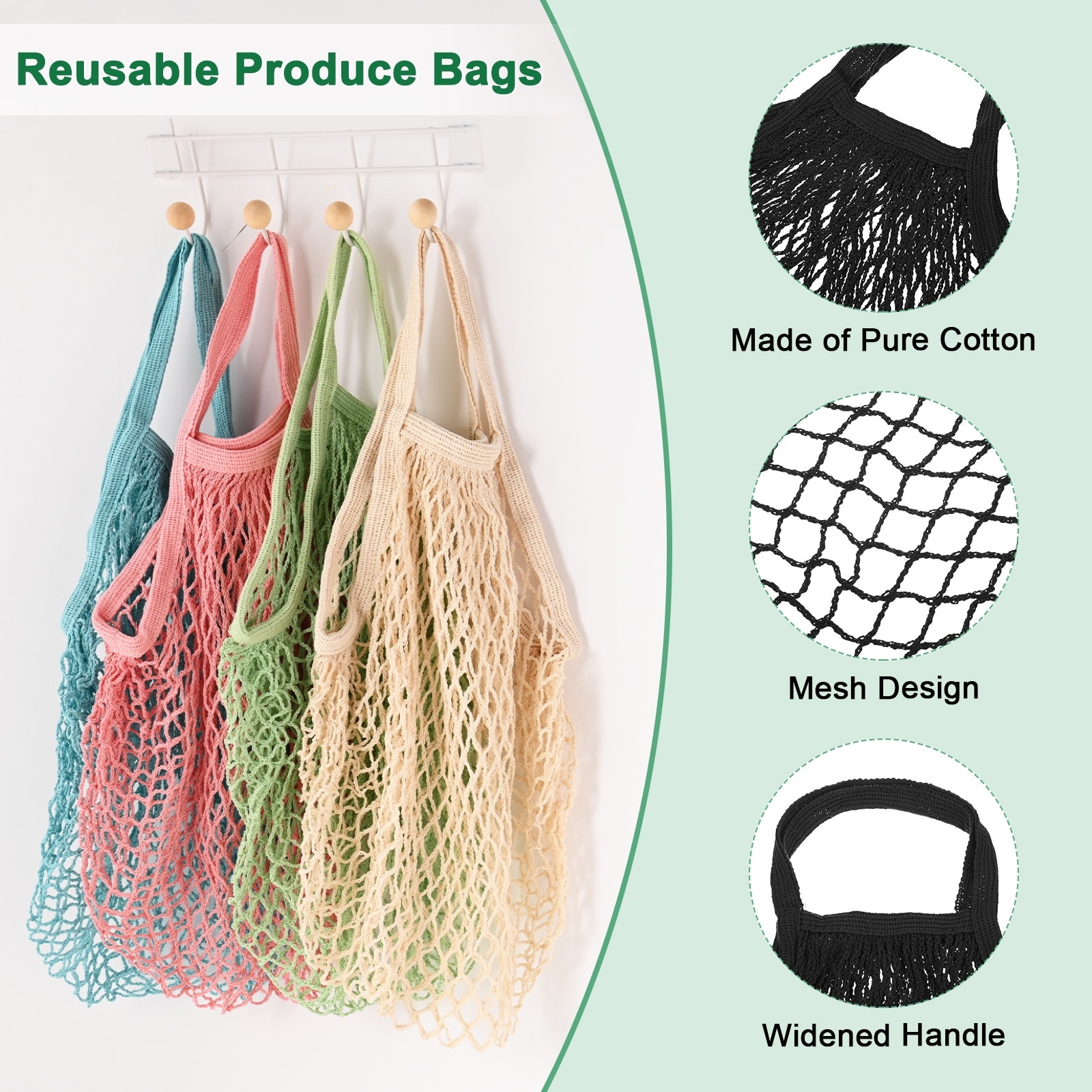 1-Pack Reusable Washable Mesh Net String Grocery Bags [Cream,Short Handle] - 38*35*10CM