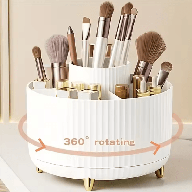 SpinGlow 360 Rotating Makeup Organizer Cosmetic Storage Holder ivory