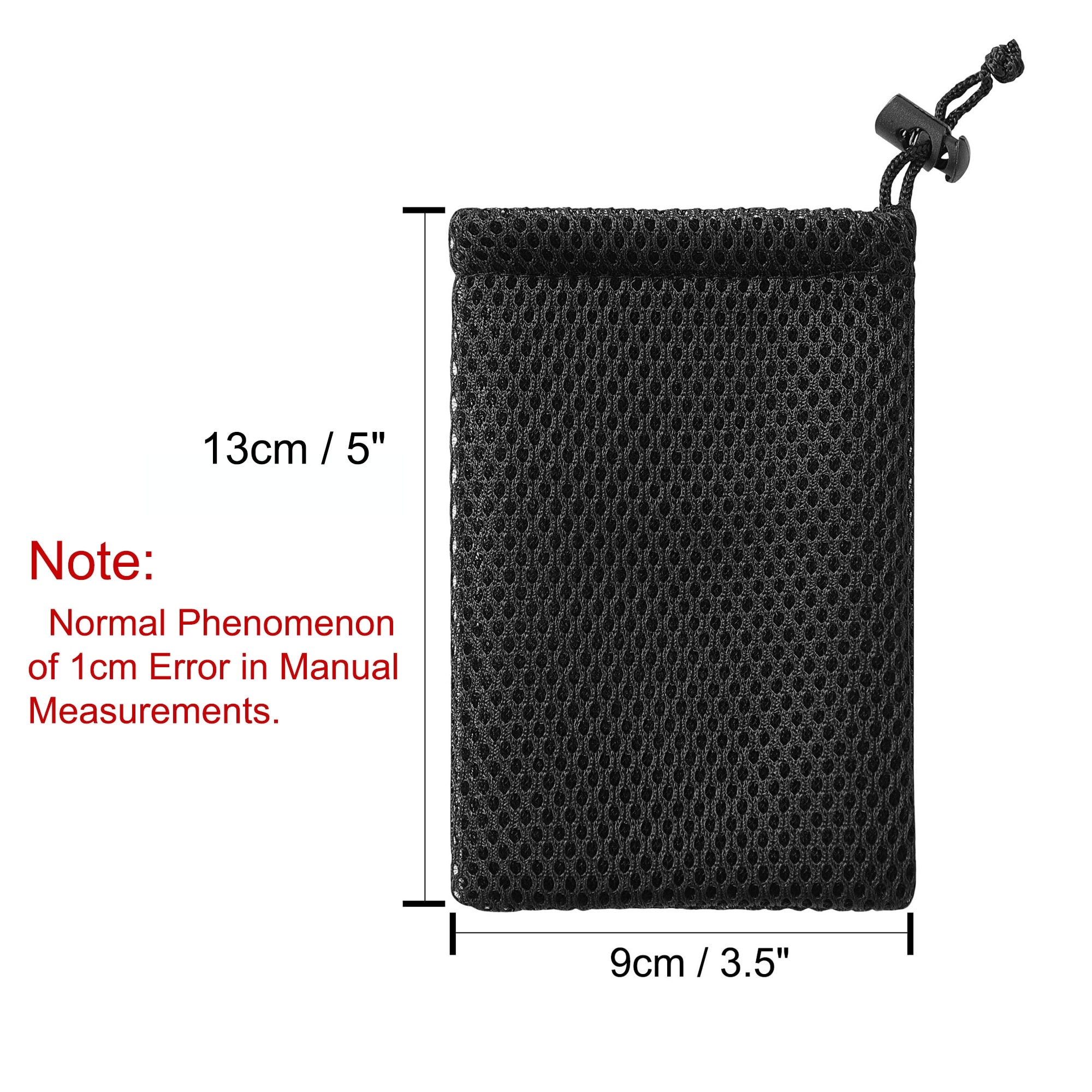 3pcs Black Nylon Mesh Drawstring Bag, 5 x 3.5 Inch Storage Pouch String Bags - 3 Pcs