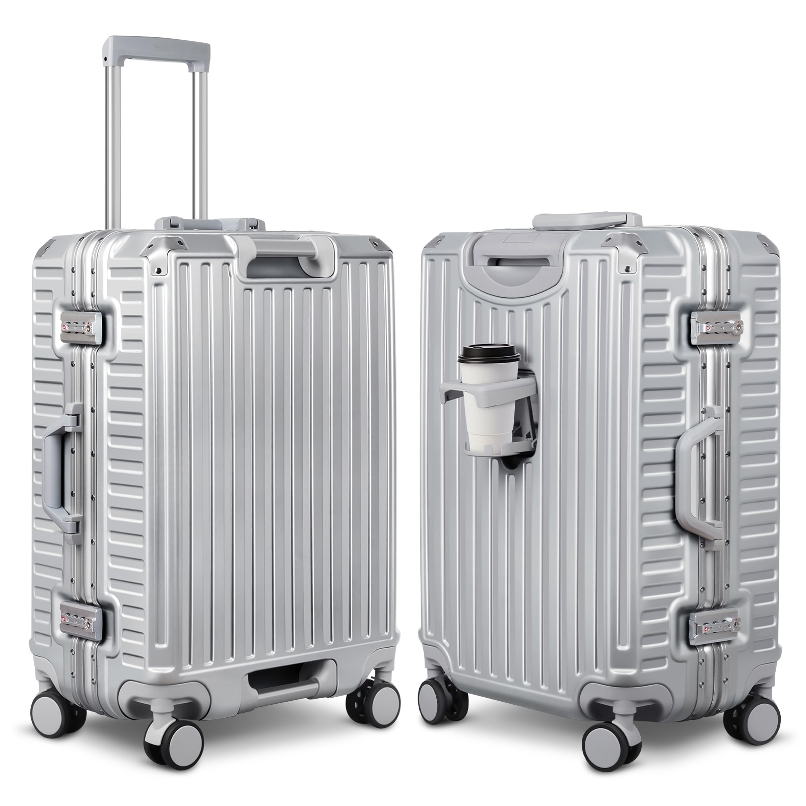 Zipperless Aluminum Frame Luggage with Spinner Wheels TSA Lock and Cup Holder 28" Hard Shell Suitcase