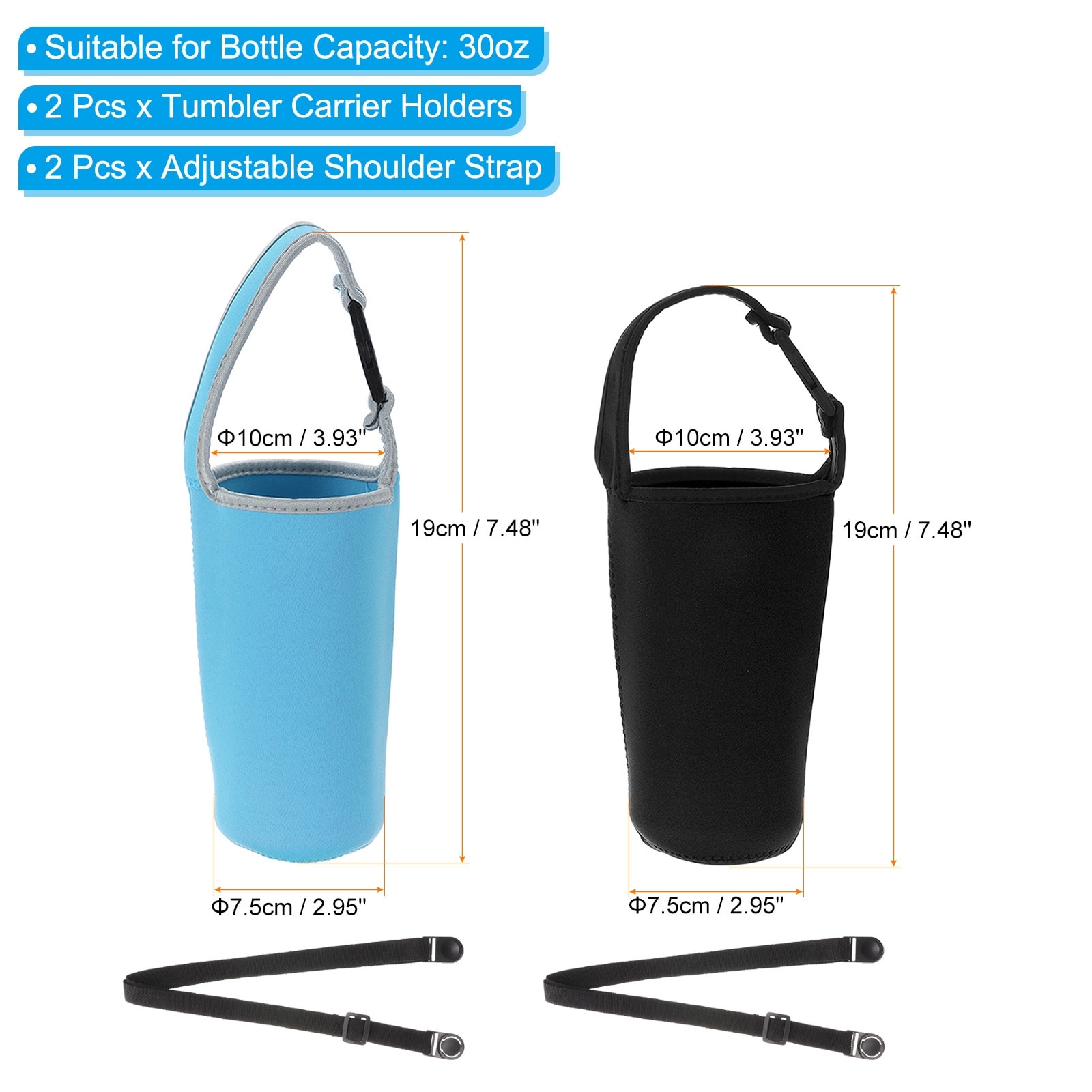 Tumbler Carrier Holders with Shoulder Strap Set, Reusable Neoprene Insulated Mug Water Bottle Protector - 30oz