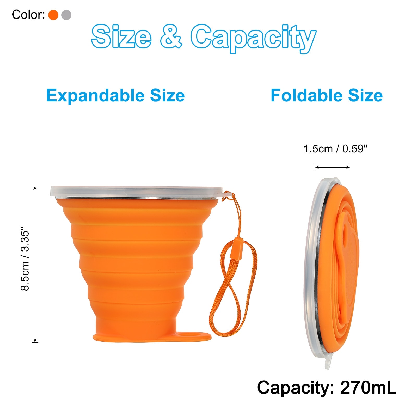 Collapsible Travel Cup, Travel Folding Cup Silicone Portable Drinking Cup for Camping Hiking Traveling - Gray, Orange - 270mL