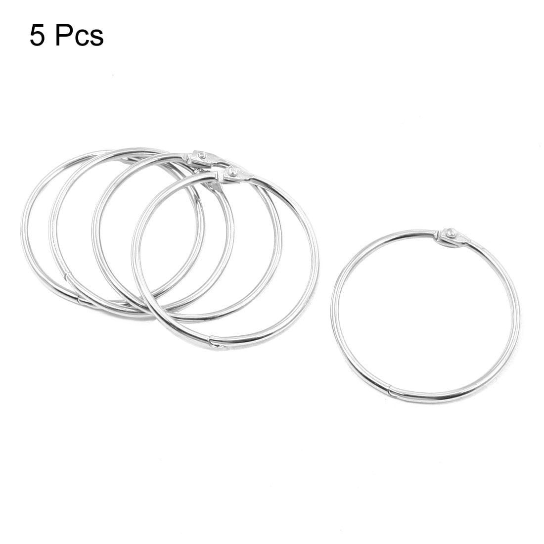 5 Pcs Pull Closure Silver Tone Round Circle Mini Key Ring Keyring - 5 Pcs