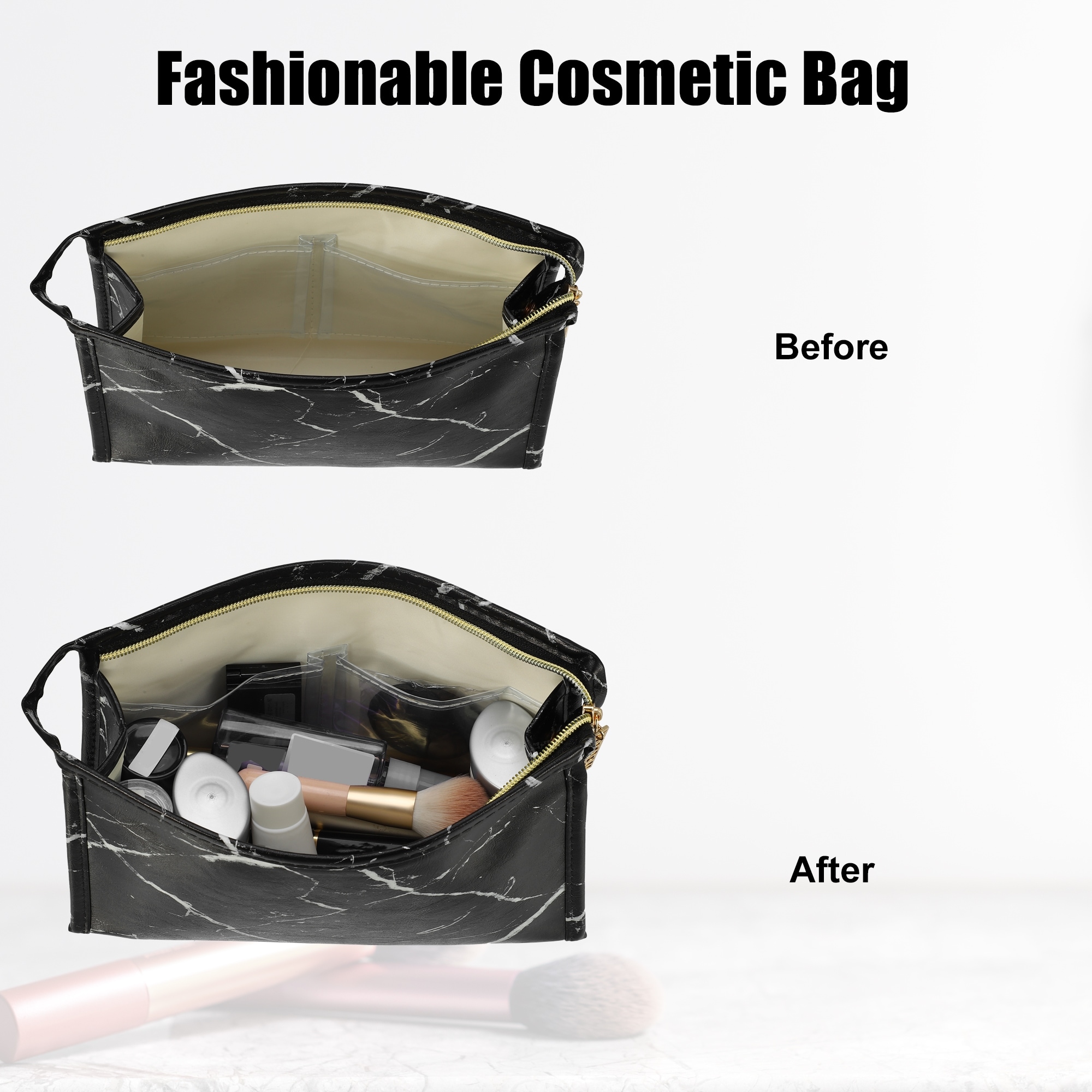 Portable Travel Cosmetic Makeup Bag Waterproof Pouch Makeup Case Black White - Black White