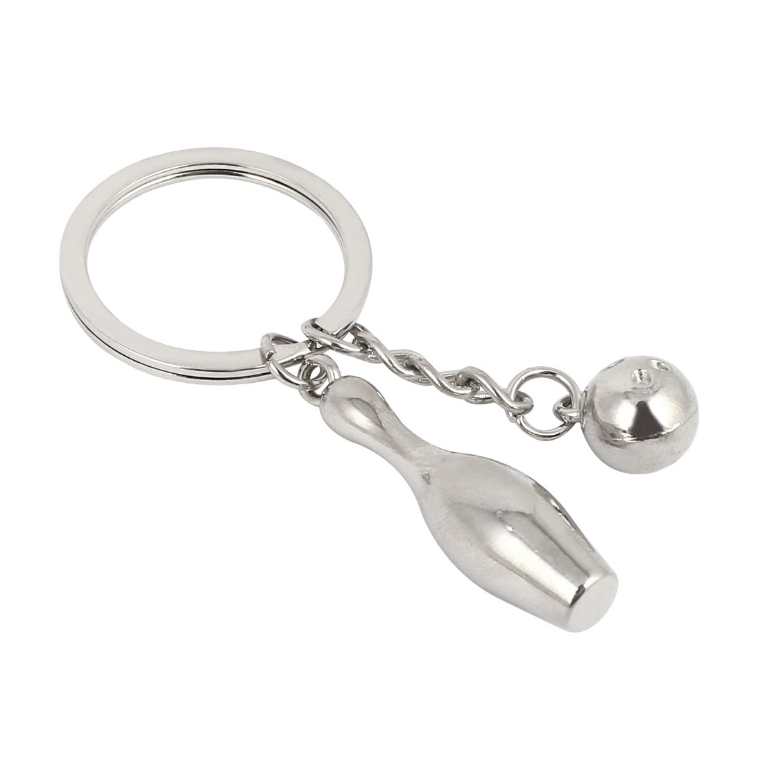 Souvenir Circular Dark Gray Bowling Ball Ornament Keychain Holder - Silver - 1 Pcs