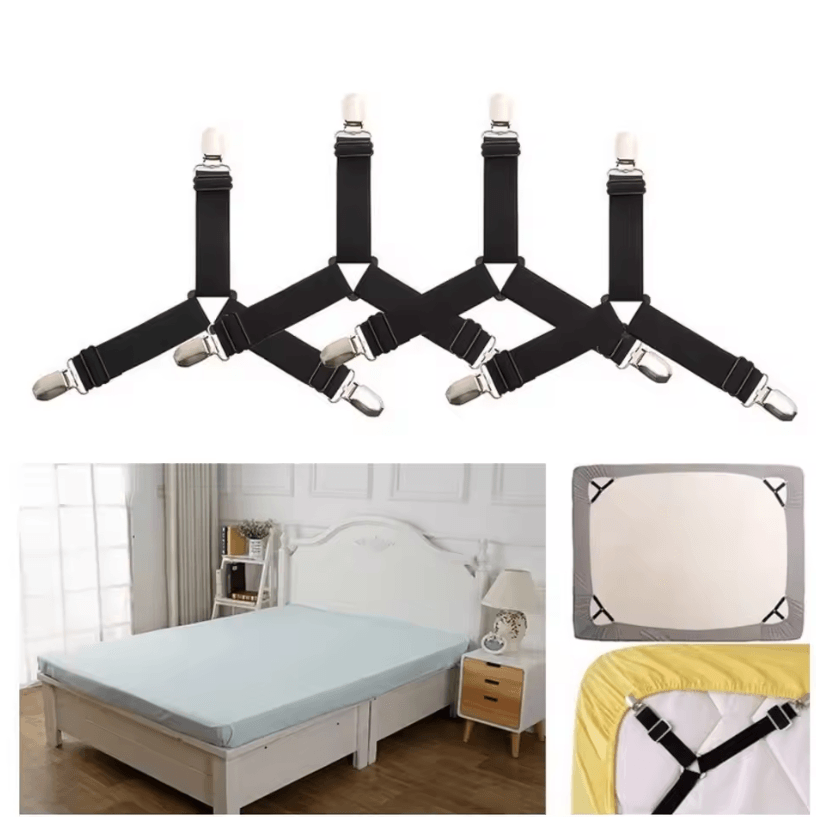 4 Piece Adjustable Bed Sheet Fasteners Secure Mattress Cover Clip Straps 4pcs White