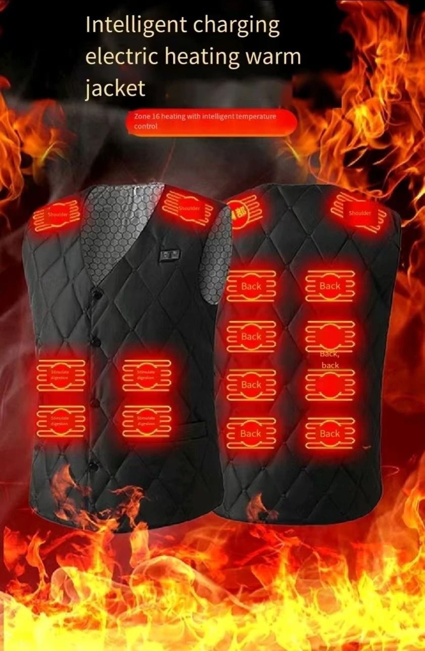 Dual Control Sixteen Zone USB DC Electric Heating Vest For Men Winter Warm Thermal Vest 3xl black