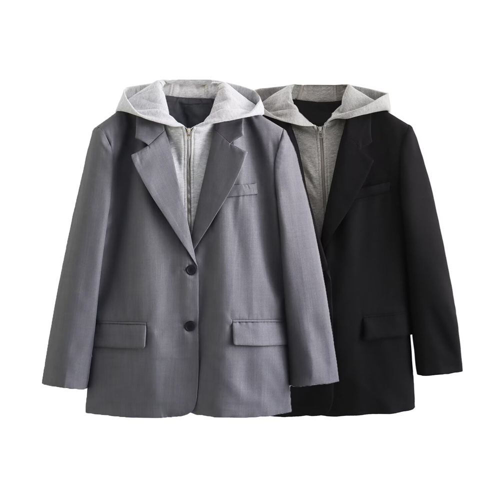 Casual Blazer, Spring New Single Breasted Hooded Jacket, Versatile Suit Coat With Decorative Panel gray xsold