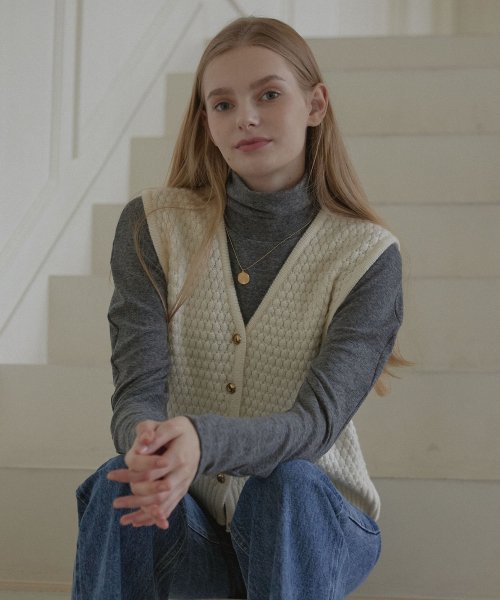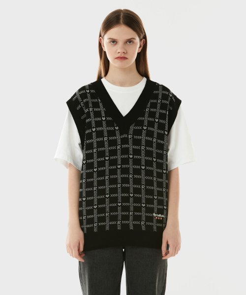 rolarola CHECK JACQUARD KNIT VEST BLACK
