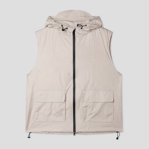 apostrophecomma Glossy Windbreak Utility Hooded Zip-Up Vest_Beige