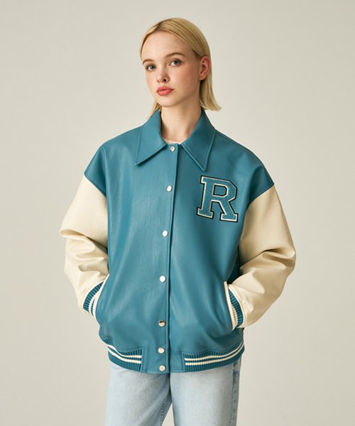 ladyvolume 9111 VARSITY LEATHER JACKET_SKY BLUE