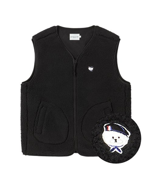 beyondcloset New Parisian Eco Fur Fleece Zip-Up Vest Black