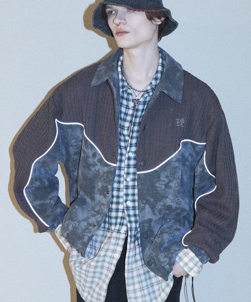 physicaleducation PHYPS COLOR BLOCK CURVE TRUCKER JACKET GREIGE