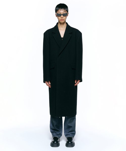 avan 125CM Super Long Unisex Balmacaan Wool Coat Black