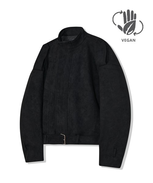 standarderror 87-STAN005 Front Plaquet Short Belted Suede Jacket Black