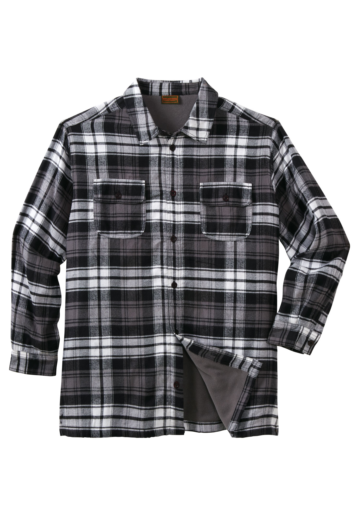 Men's Big & Tall Fleece-Lined Flannel Shirt Jacket by Boulder Creek in Black Plaid (Size 7XL)