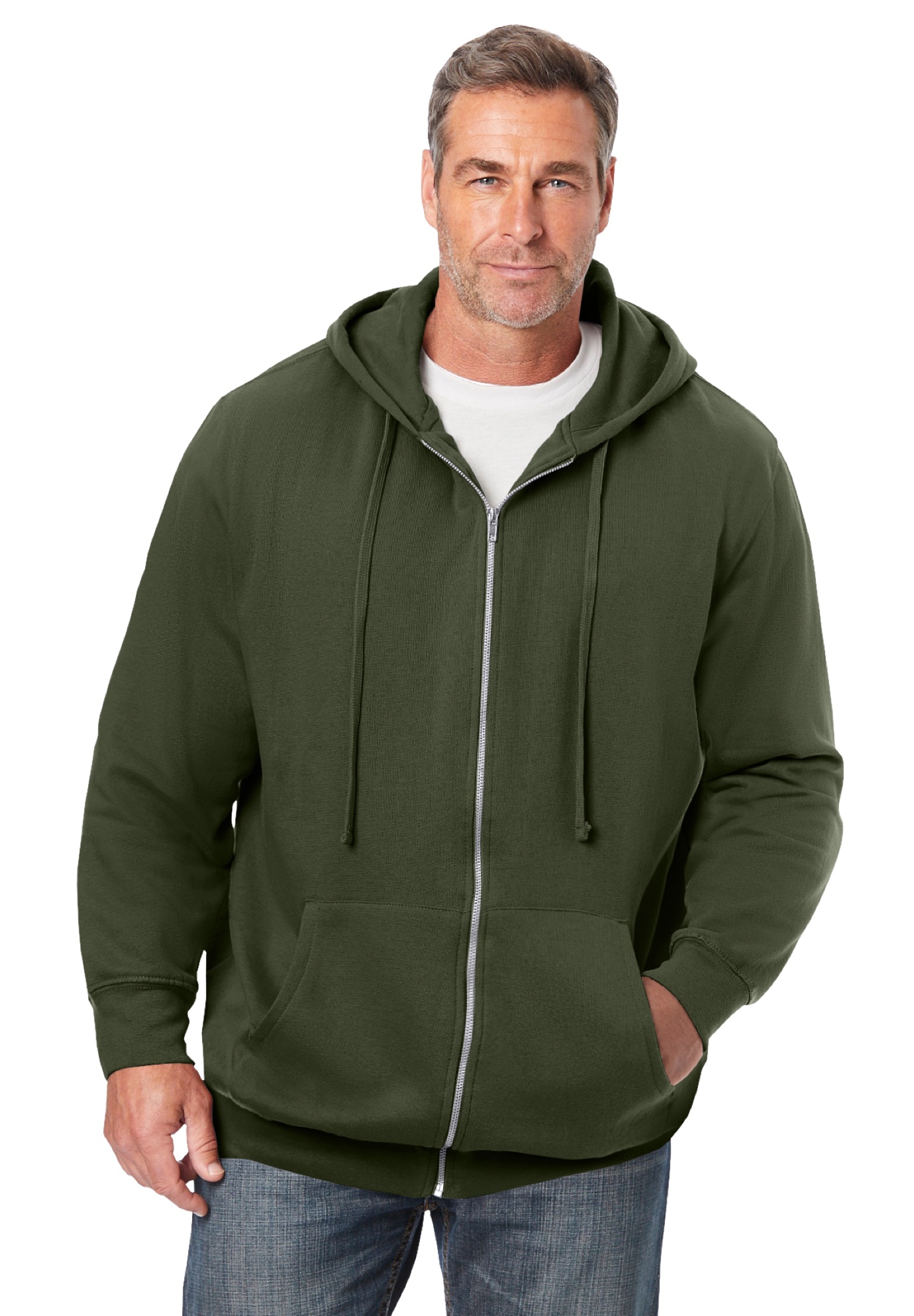 Men's Big & Tall Fleece Zip-Front Hoodie by KingSize in Deep Olive (Size 9XL) Fleece Jacket