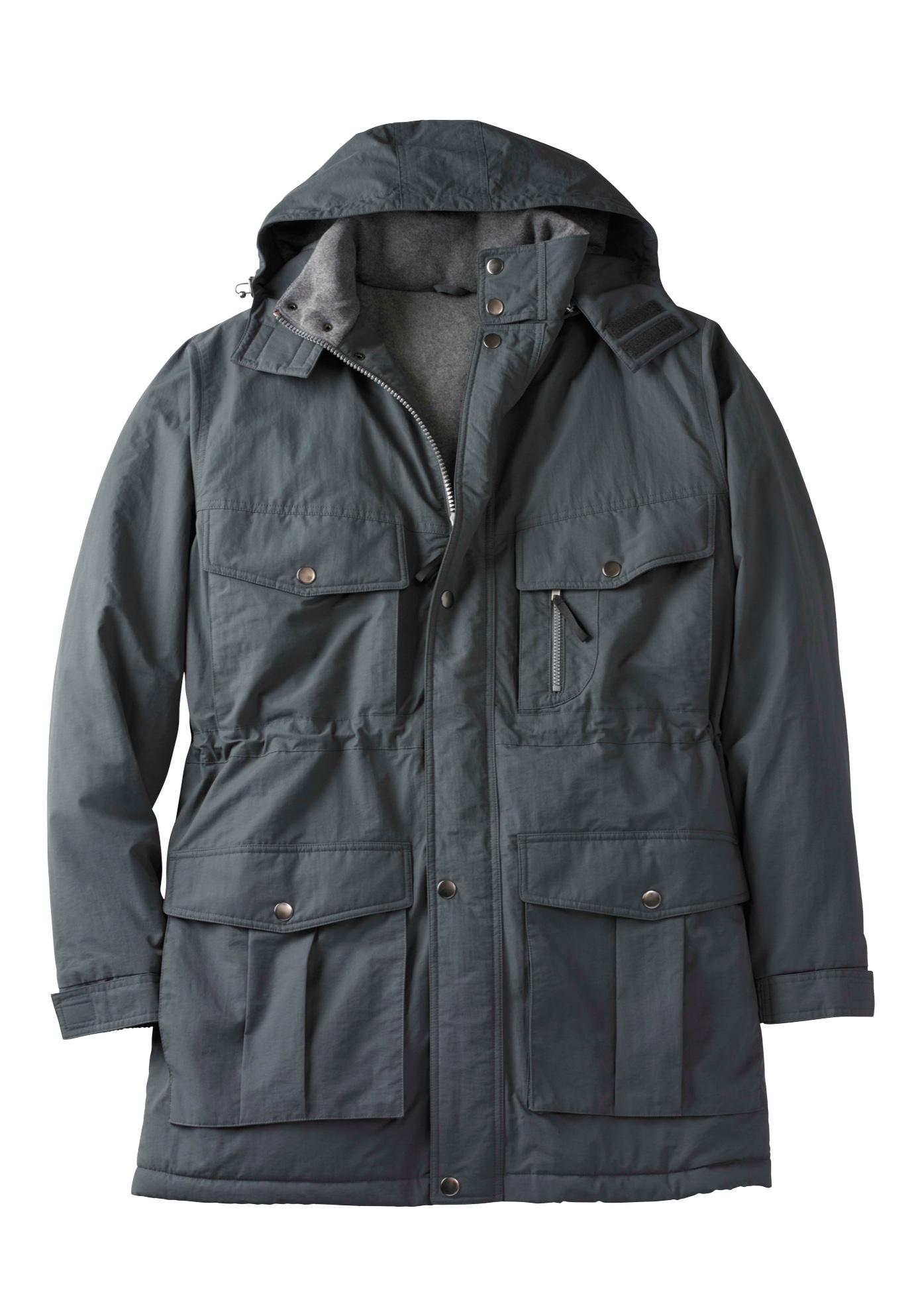 Men's Big & Tall Fleece-Lined Parka with Detachable Hood and 6 Pockets by Boulder Creek in Carbon (Size 7XL) Coat