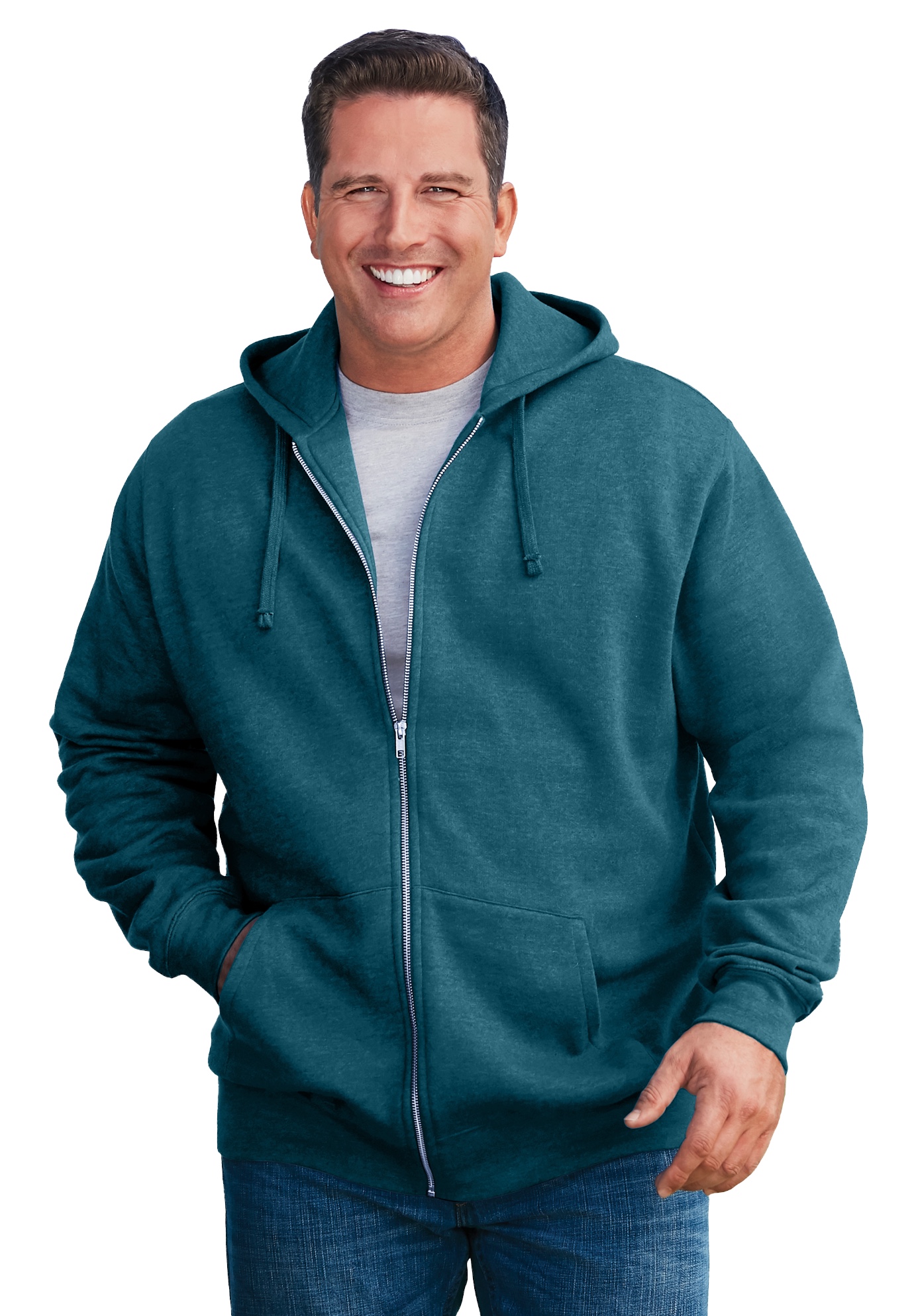 Men's Big & Tall Fleece Zip-Front Hoodie by KingSize in Heather Midnight Teal (Size 8XL) Fleece Jacket