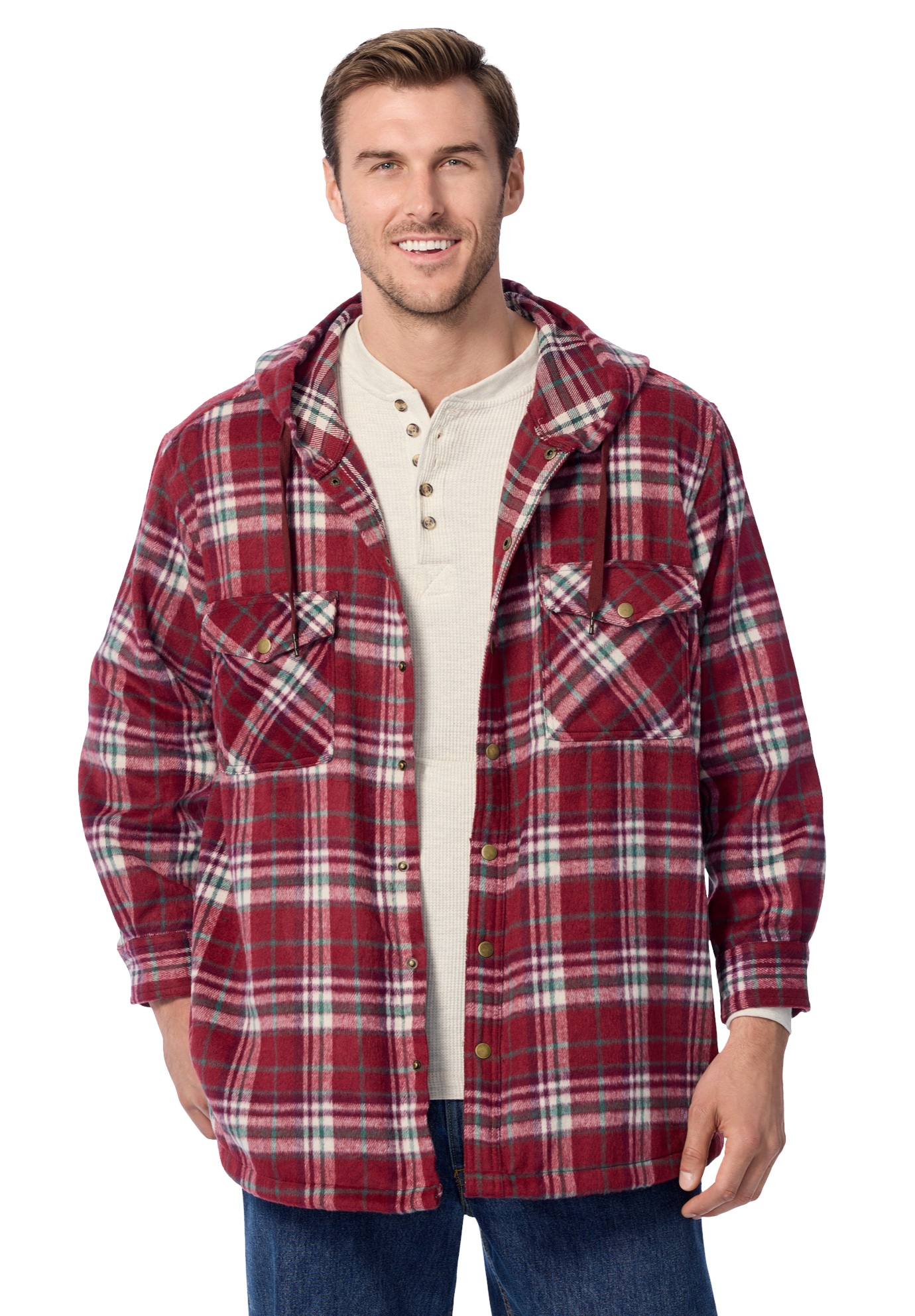 Men's Big & Tall Removable Hooded Shirt Jacket by Boulder Creek in Black Plaid (Size 4XL)