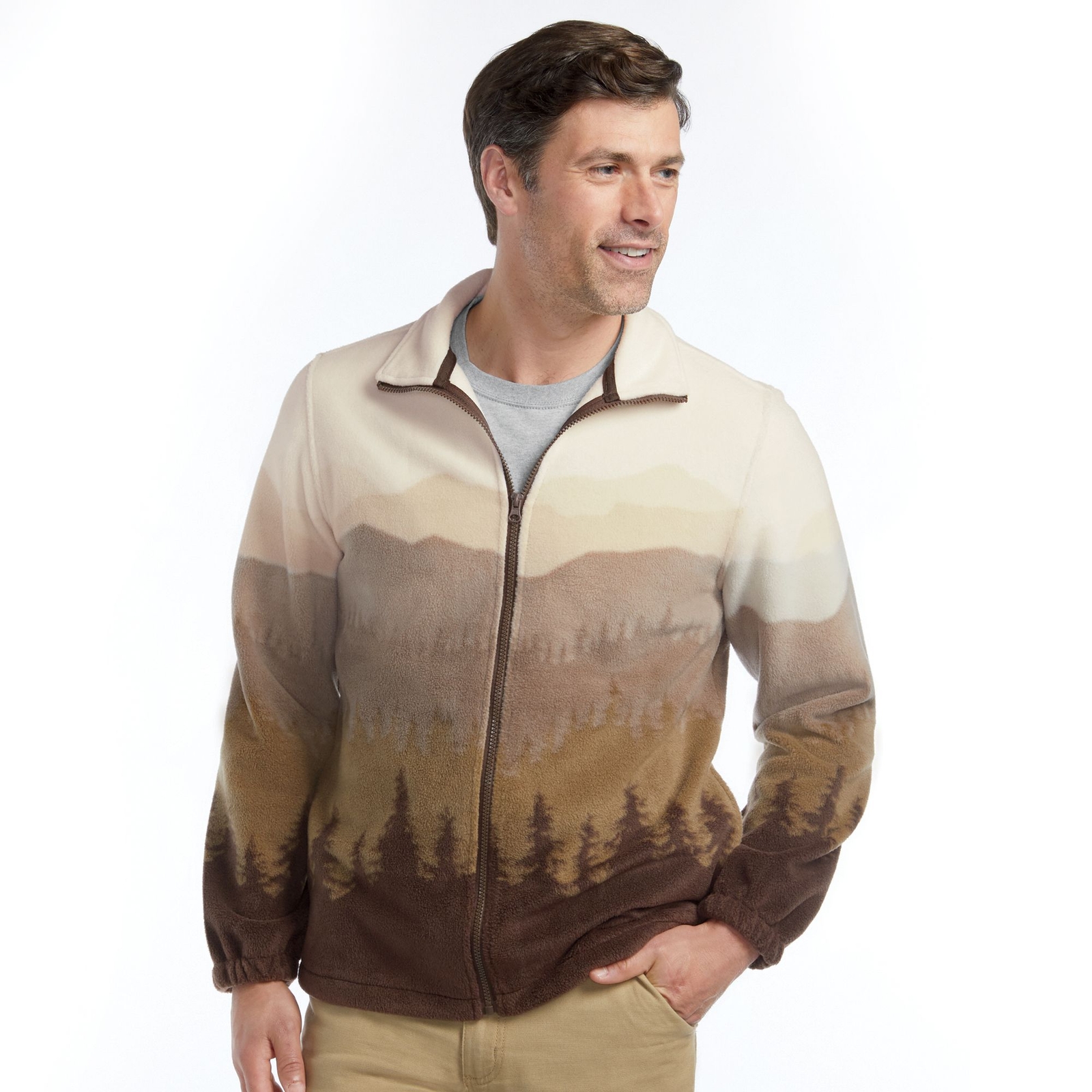 Mason Signature Men's Wildlife Zip-Front Fleece Jacket (Size XL) Brown/Mountain, Polyester