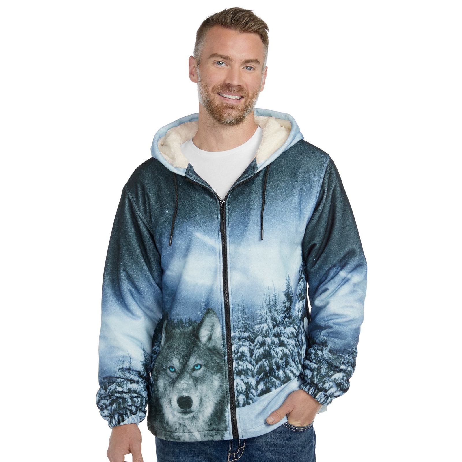 Mason Signature Men's Wildlife Hooded Zip-Front Fleece Jacket (Size S) Wolf, Polyester