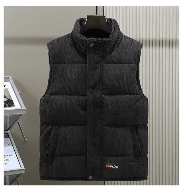 Mens Corduroy Padded Vest Winter Warm Sleeveless Jacket For Outdoor And Casual Wear 3xl black