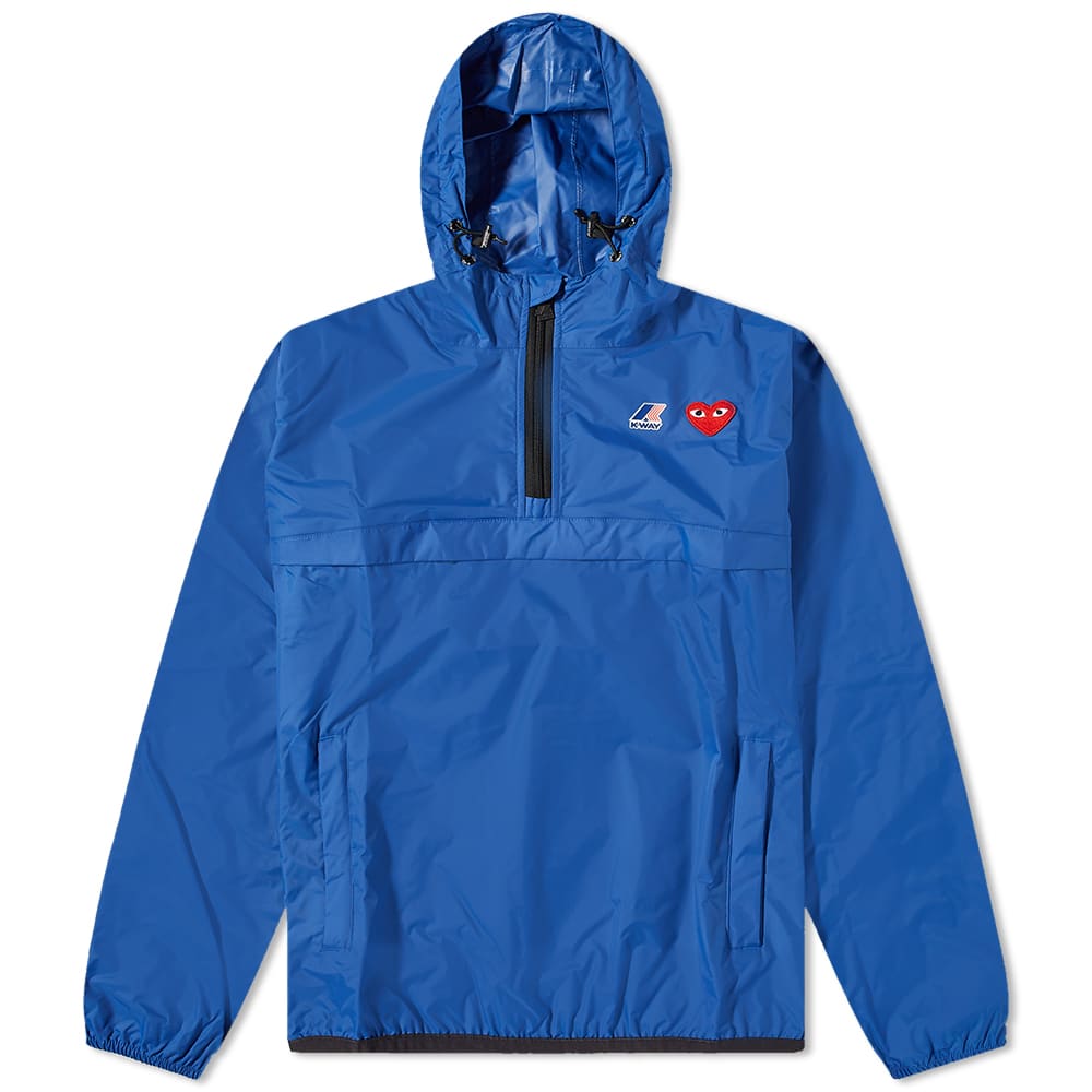 Comme Des Garçons Play Men's x K-Way Half Zip Packable Jacket in Blue