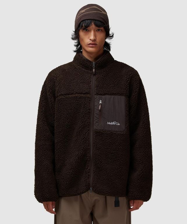 Wordmark Repeat High Pile Fleece Jacket - Natural - Purple Brand Jackets