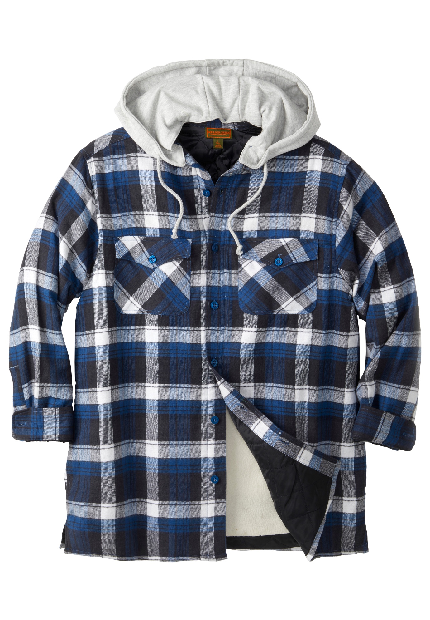 Men's Big & Tall Removable Hooded Shirt Jacket by Boulder Creek in Navy Plaid (Size 2XL)