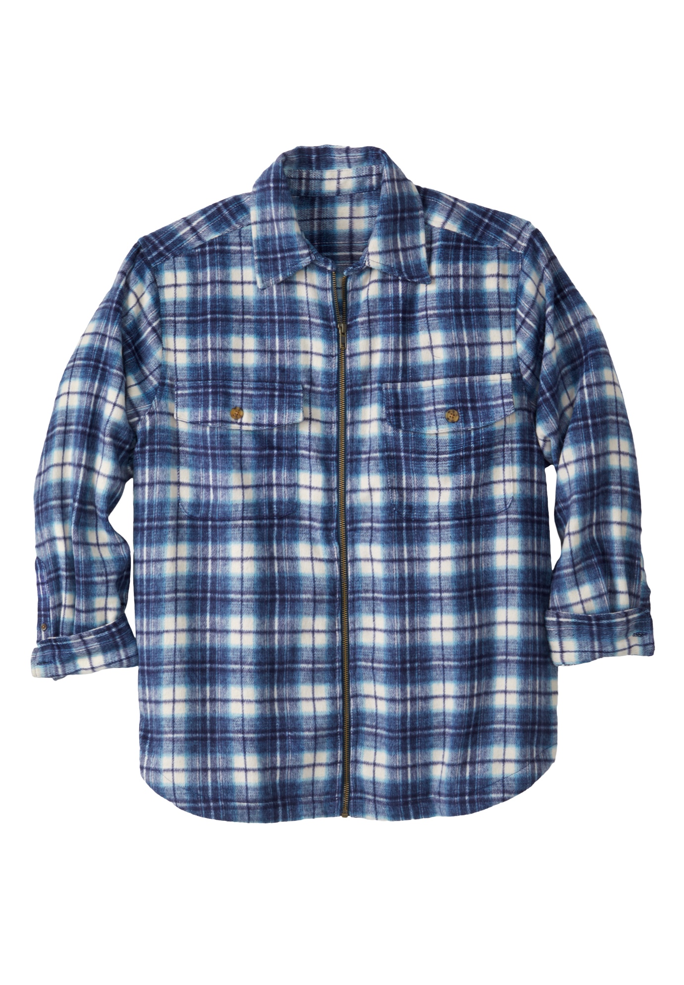 Men's Big & Tall Brawny Zip Up Shirt Jacket by KingSize in Navy Plaid (Size 4XL)