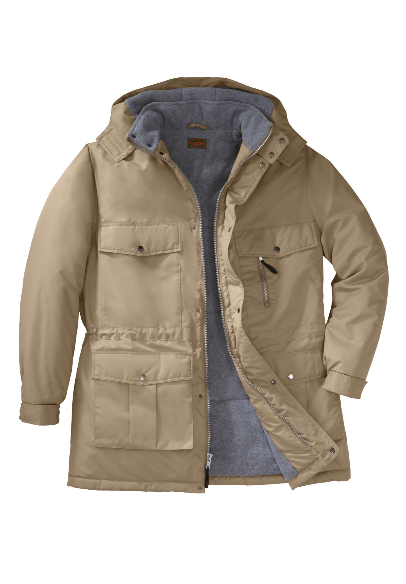 Men's Big & Tall Fleece-Lined Parka with Detachable Hood and 6 Pockets by Boulder Creek in Dark Khaki (Size 2XL) Coat