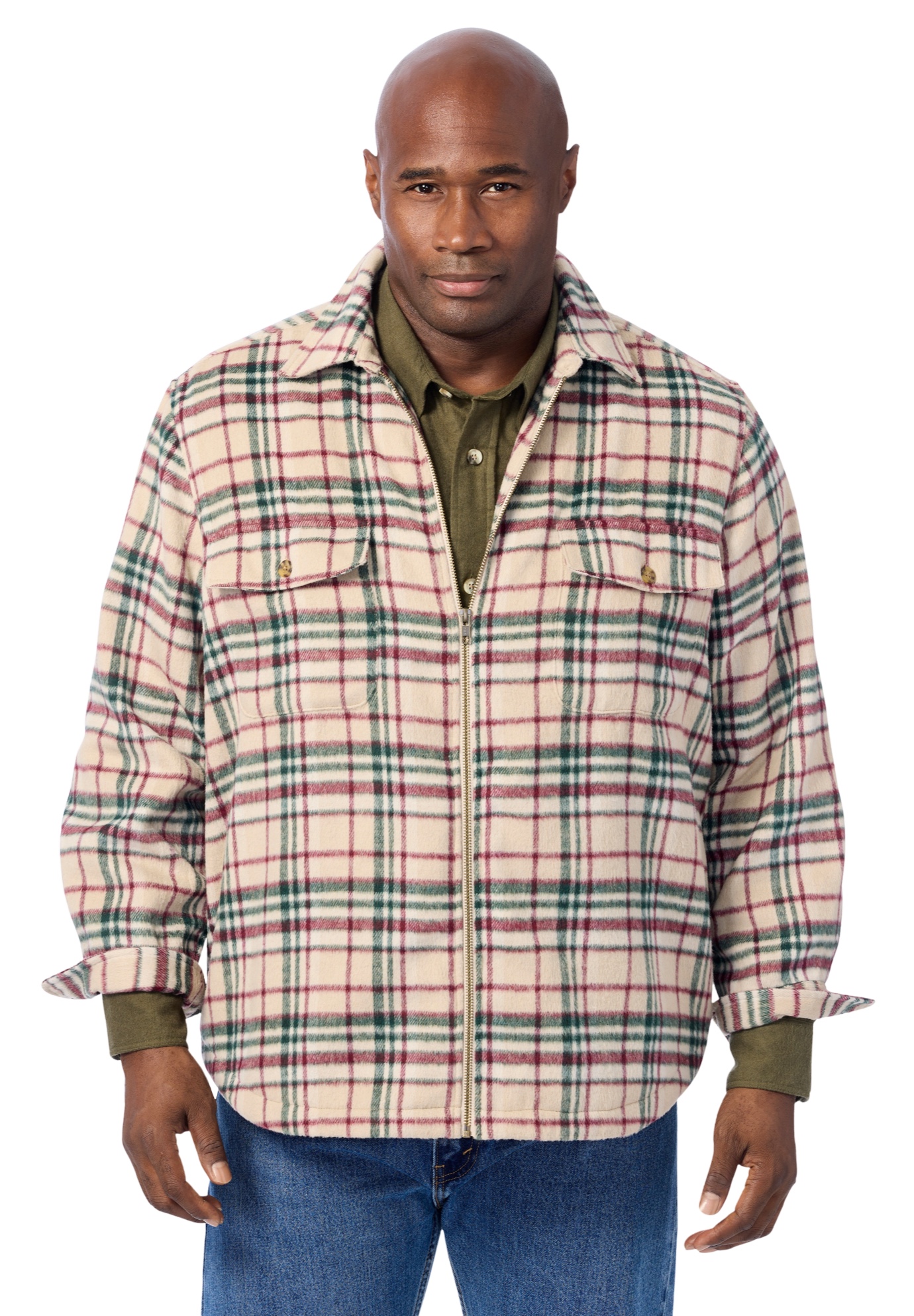 Men's Big & Tall Flannel Full Zip Snap Closure Renegade Shirt Jacket by Boulder Creek in Khaki Plaid (Size 4XL)