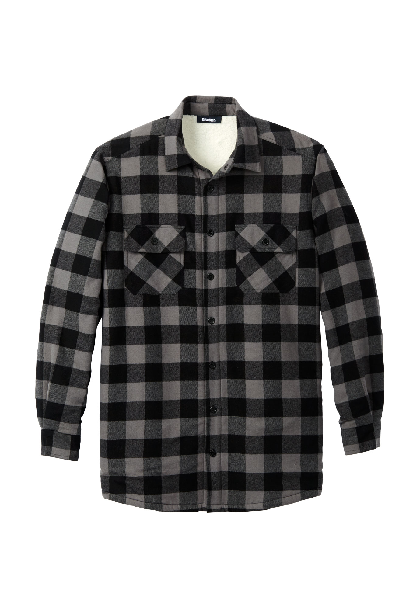 Men's Big & Tall Fleece Sherpa Shirt Jacket by KingSize in Black Buffalo Check (Size 2XL)