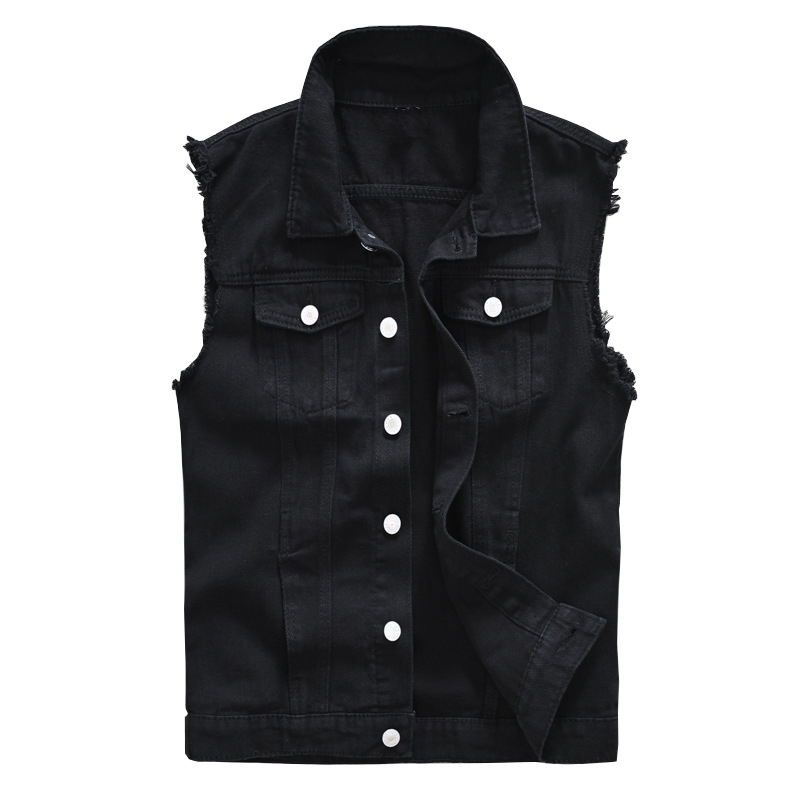 Mens Black Jean Vest, Slim Fit Denim Waistcoat, Fringe Sleeveless Tank Top black xl